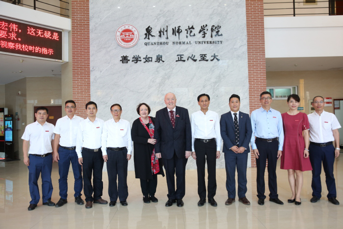 Party secretary Zhu Shize, on behalf of QNU, welcomed the visit of Mr. Harris and the delegation. He hoped that in the future, the two sides would make full use of their own advantages in running schools, share high-quality resources, and focus on diversified cooperation in undergraduate and postgraduate education. Harris commented that QNU owns unique regional superiority and local education features. In the future, the two universities have broad space for cooperation in personnel training, academic research and so on. President of QNU Qu Guangqing awarded Harris the appointment of guest professor. Zhu Shize exchanged souvenirs with Harris, wearing the school badge of QNU for Harris, and then a group photo was taken.