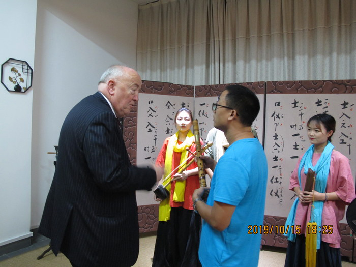 During the visit, Harris and his delegation went to the School of Literature and Communication and the School of Music and Dance, experiencing Chinese calligraphy and Nanyin music. Prof. Harris and his wife, as well as Mr. Shen Rong, expressed great interest in and spoke highly of QNU's inheritance and protection of traditional culture.