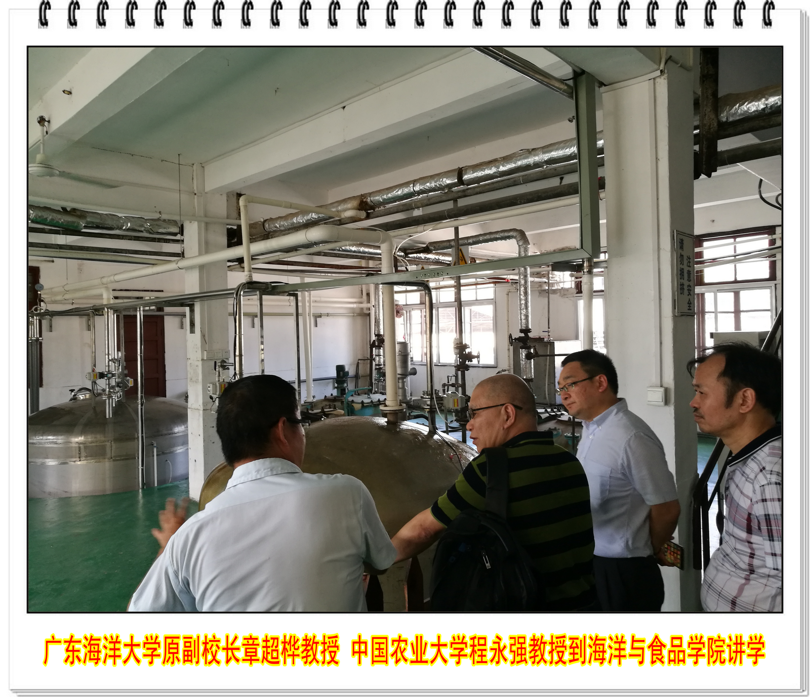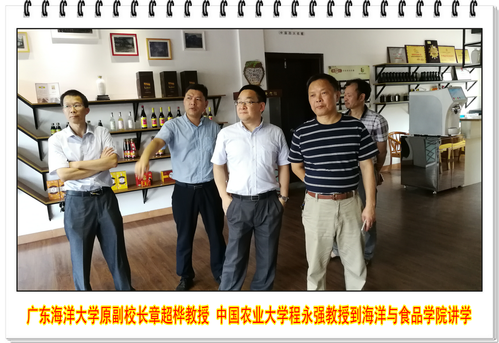 2017年6月30日,广东海洋大学原副校长章超桦教授、中国农业大学食品科学与营养工程学院程永强教授、海洋与食品学院院长袁建军教授和海洋生物系主任吴文林教授在永春科技局的陪同下,到永春老醋有限责任公司、永春县岵山津源酱醋厂有限公司调研永春老醋的传统加工工艺,就传统老醋现代加工等问题进行探讨。