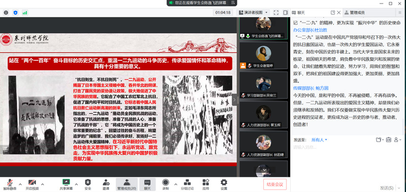 此次培训采用线上形式,学院学生会主席团成员作为主讲人,带领学生会成员们进行了“学习《关于有助于高校学生会(研究生会)深化改革的若干意见》”“学习《关于落实共青团和学联对高校学生会(研究生会)指导管理责任的若干规定(试行)》”“学习《福建省学生联合会章程》”“学习《关于进一步加强高校学生会组织章程建设工作的通知》”“学习纪念“一二•九”运动”“学习党的二十大精神”“学习新党章”“学习习近平总书记考察内蒙古大学重要讲话精神”等8个主题的学习。培训会上,同学们踊跃发言,畅谈感悟,学习氛围十分浓厚。大家纷纷表示,将自觉加强理论学习,提高政治思想素养,坚定理想信念,持续向党组织靠拢,充分发挥学生干部的模范带头作用,踔厉奋发,笃行不怠,努力为实现中华民族伟大复兴贡献青春力量。