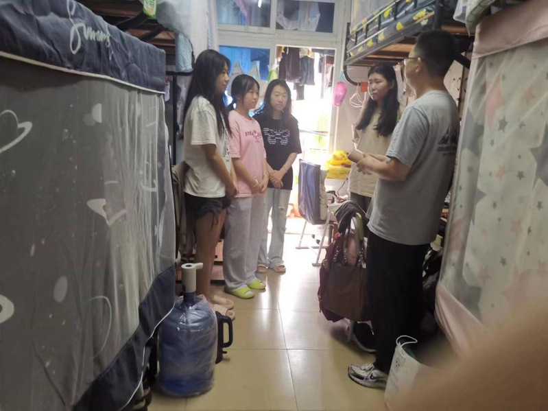 学习后,教师党员们到学生公寓区走访学生宿舍,与学生“拉家常、聊近况、话学业”。走访学生宿舍期间,教师党员们就宿舍安全、宿舍卫生、宿舍文化等与同学们进行了近距离研讨,希望同学们持续构建和谐、文明、安全的宿舍环境;同时,党员们深入分析了学生们的学习情况、生活状态和思想动态,倾听他们的困惑与心声,以及同学们的急难愁盼问题,耐心为同学们解疑释惑,鼓励同学们勇敢面对困难,坚定信心,努力追求梦想。