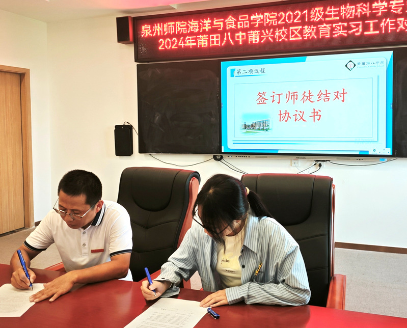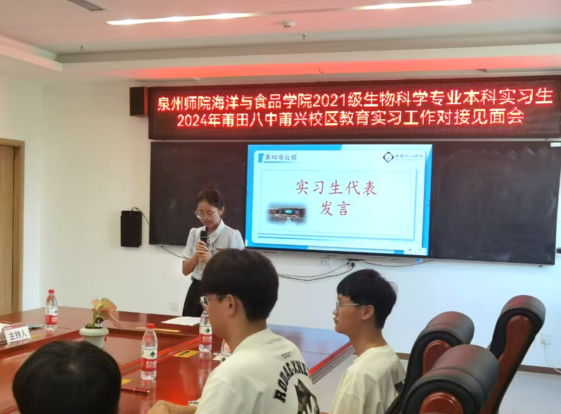 为更好实现教学理论知识与教学技能的结合,提升师范生教育实践、综合素质能力,强化师范生教书育人初心,2024年9月8日,泉州师院海洋与食品学院2021级生物科学专业的20位实习生前往莆田第八中学召开为期16周的秋季集中教育实习,其中10位实习生在莆田八中高中部(莆兴校区)实习,另10位实习生在八中初中部(鳌峰校区)实习,并于9月19日举行了教育实习见面会。