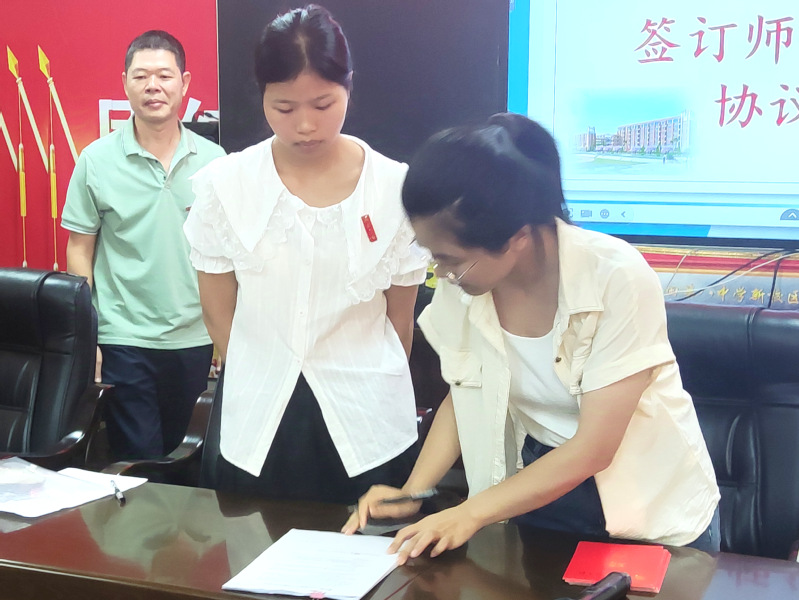 八中副校长吴春山、陈健健宣读教育实习师徒结对名单