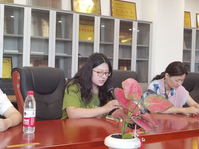 实习队长彭思琪、副队长王润珊分别作为实习生代表进行发言,在发言中她们第一时间感谢八中给予的实习机会,为自己给予锻炼的平台,期待在老师们的指导下,能够切实取得教学经验和提高班级管理能力,同时感谢泉州师院为培养他们做出的不懈努力,最后表示会持续主动、虚心求教、踏实向学,在工作中成为尽职尽责的好老师,按时完成实习任务,不辜负指导老师们的厚望。