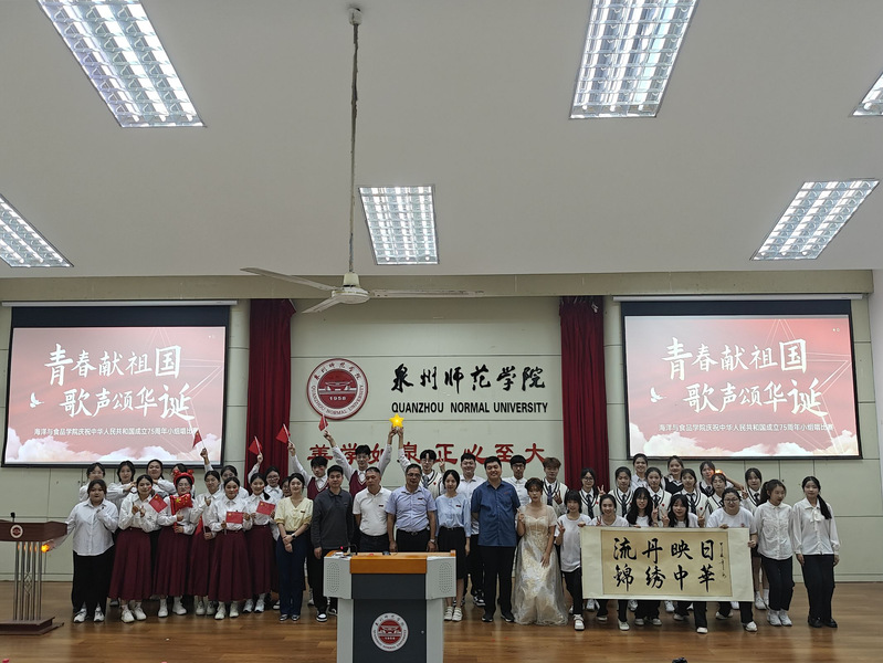 10月26日,海洋与食品学院在孙中山纪念堂三楼报告厅举行“青春献祖国,歌声颂华诞”庆祝中华人民共和国创建75周年小组唱比赛,用激昂的歌声为祖国献上最诚挚的生日祝福。学院党委书记蔡志荣莅临观看比赛,学院党委副书记刘礼元、全体辅导员以及学生会、自律会主席团成员应邀担任评委。