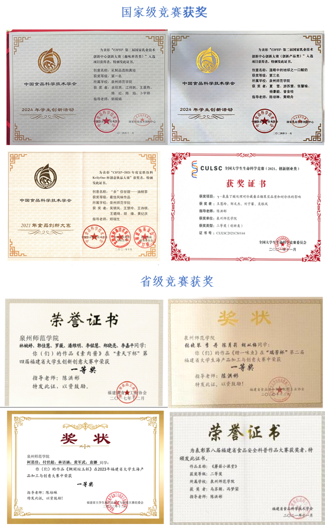 本专业非常注重培养学生的创新能力,持续组织学生参加各类食品相关学科竞赛,拥有自主创办的省级赛事—“福