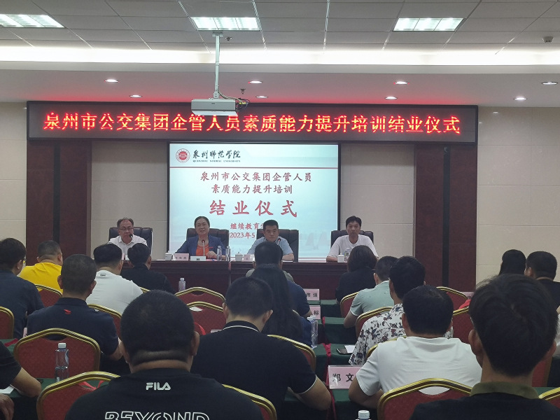 5月18日下午,2023年泉州市公交集团企管人员素质能力提升培训班在完成所有课程教学之后,举行了结业仪式。泉州市公交集团党委副书记、总经理陈志刚,人力资源部经理陈䶮毅和继续教育处、继续教育学院领导出席,公交集团全体参训学员以及继续教育学院培训中心老师参加结业仪式。继续教育学院党总支书记陈建宁主持仪式。