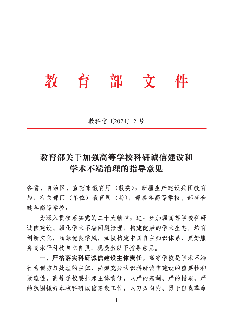 为深入贯彻落实党的二十大精神,进一步加强高等学校科研诚信建设、强化学术不端问题治理,构建健康的学术生态,培育创新文化,涵养优良学风,加快构建中国自主知识体系,更好服务高水平科技自立自强,现提出以下指导意见。