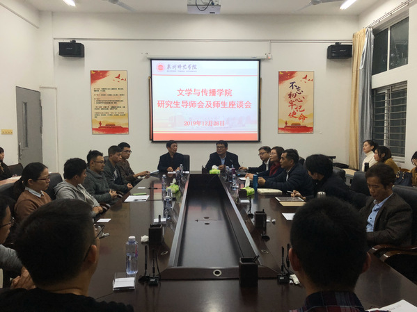 1226日下午,文学与传播学院研究生部于院会议室召开研究生导师会及师生座谈会。本次会议由文学与传播学院研究生部主任黄鸿琼教授主持,院王勇卫书记、分管院研究生部的刘文波副院长、杨秋生副院长出席会议,书法学科导师,汉语言文学的导师,全体书法研究生参加会议。