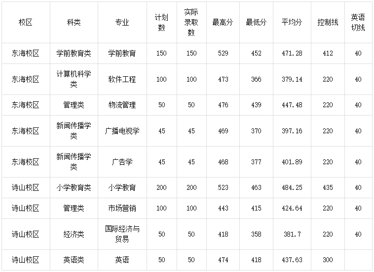 2019年专升本录取分数统计